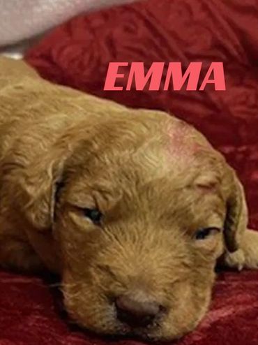 Meet Emma, the runt of the liter at only 2.5 pounds at 2 weeks old. She was born on 01/23/26 and is a super sweet Golden/Red F1B Labradoodle. She is very happy and healthy.
