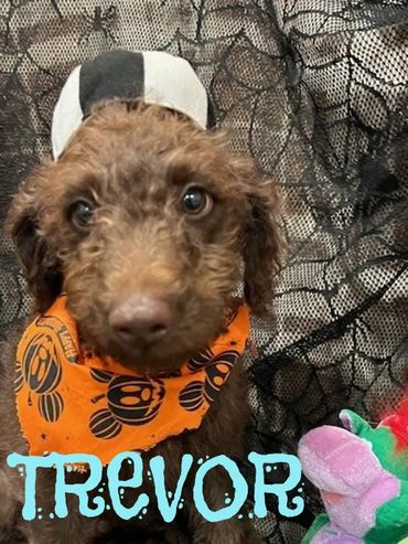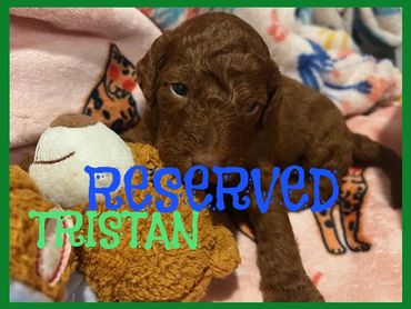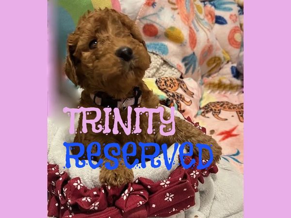Hello there, I am Trinity, I was born on 7/10/25 and I am a female Golden Red F1B Labradoodle. My parents are Mile, a 50 lb. F1 Golden Labradoodle and Duke, a 45lb. AKC registered Moyen Poodle. I expect I will be 45-55 pounds full grown... and I will be sure to melt your heart with lots of puppy kisses and snuggling.