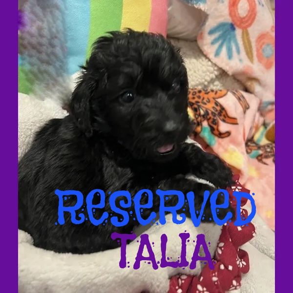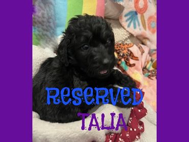 Hi, I am Talia, I was born on 7/10/25 and I am a happy and healthy female Black F1B Labradoodle. My parents are an