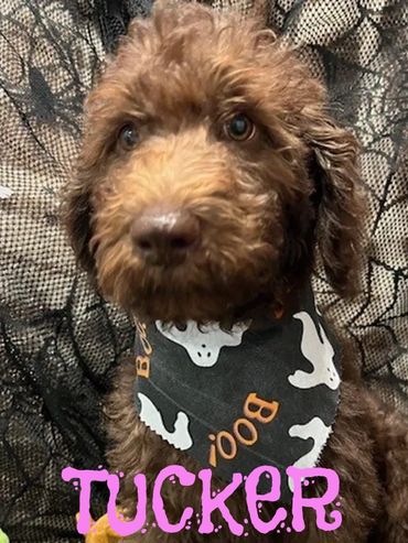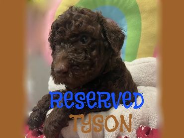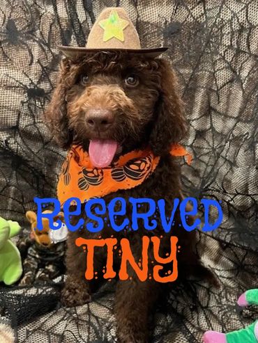 Hello there, I am Tiny, I was born on 7/10/25 and I am a male Chocolate F1B Labradoodle. My parents are Mile, a 50 lb. F1 Golden Labradoodle and Duke, a 45lb. AKC registered Moyen Poodle. I expect I will be 45-55 pounds full grown...