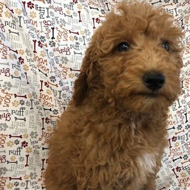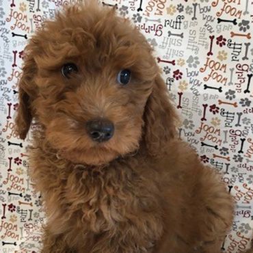 Coco is a 35 lb. Mini Goldendoodle and Duke is a 45 lb. AKC registered Chocolate Moyen Poodle. Puppies are expected to be 35-45 pounds full grown... and is sure to melt your heart.