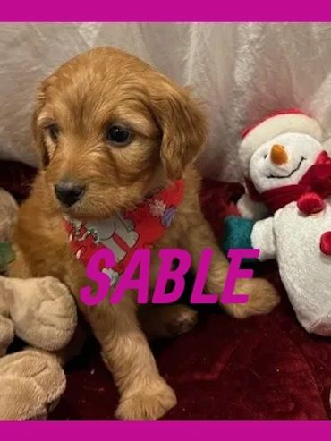 Hi, I am Sable, I was born on 11/12/25 and I am a happy and healthy female Golden Mini Goldendoodle. My parents are a