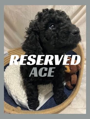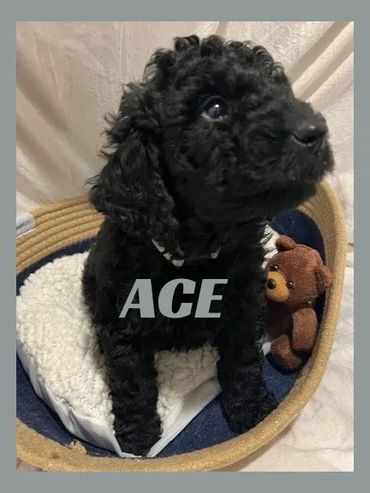 Meet Ace, He was born on 11/28/25 and he is a very cute and cuddly Male Black Moyen Poodle. His parents are Roxy and Duke. Roxy is a 40 lb. Small Standard Poodle and Duke is a 40 lb. AKC registered Chocolate Moyen Poodle. He is expected to be 35-45 pounds full grown... and is sure to melt your heart with lots of puppy kisses and snuggling.
