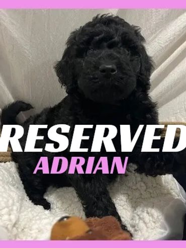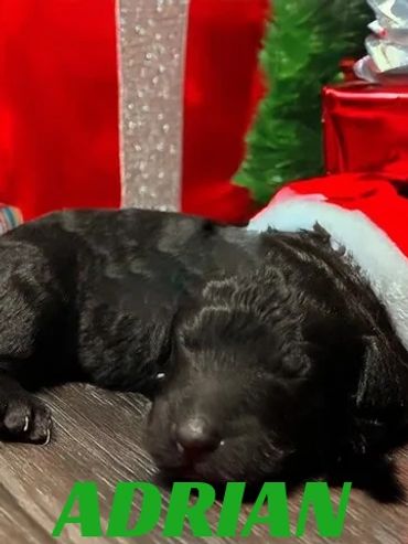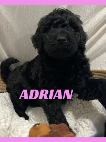 Meet Adrian, She was born on 11/28/25 and is a very cute and cuddly Female Black Moyen Poodle. Her parents are Roxy and Duke. Roxy is a 40 lb. Small Standard Poodle and Duke is a 40 lb. AKC registered Chocolate Moyen Poodle. She is expected to be 35-45 pounds full grown... and is sure to melt your heart with lots of puppy kisses and snuggling.